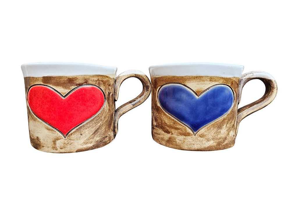Doprajte si chvíľku vo dvojici s ručne vyrábanými šálkami, ktoré nesú kúsok lásky v každom detaile. Dekorované s 3D srdiečkom v červenej a modrej farbe s jemnou patinou, vnútro šálok je glazované snehovo-bielou glazúrou, ktorá dodáva nápoju pocit čistoty a pohody. Možnosť zakúpenia aj jednotlivo v cene 8 €/ks.