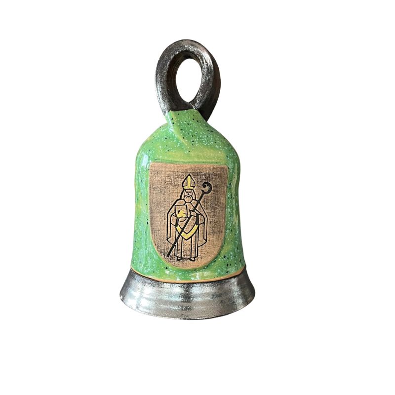 Tradičný keramický zvonček s motívom patróna mesta Liptovský Mikuláš.
